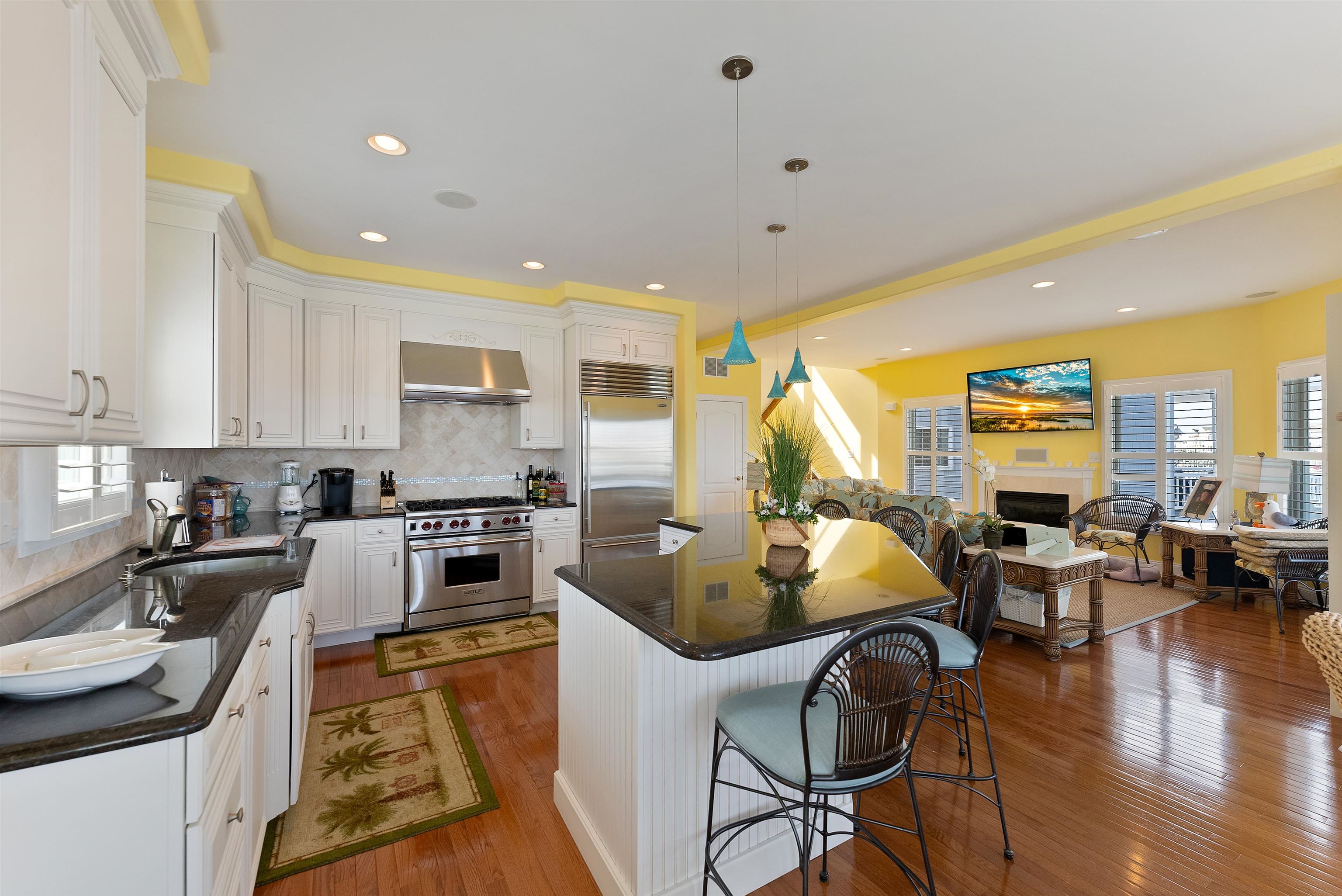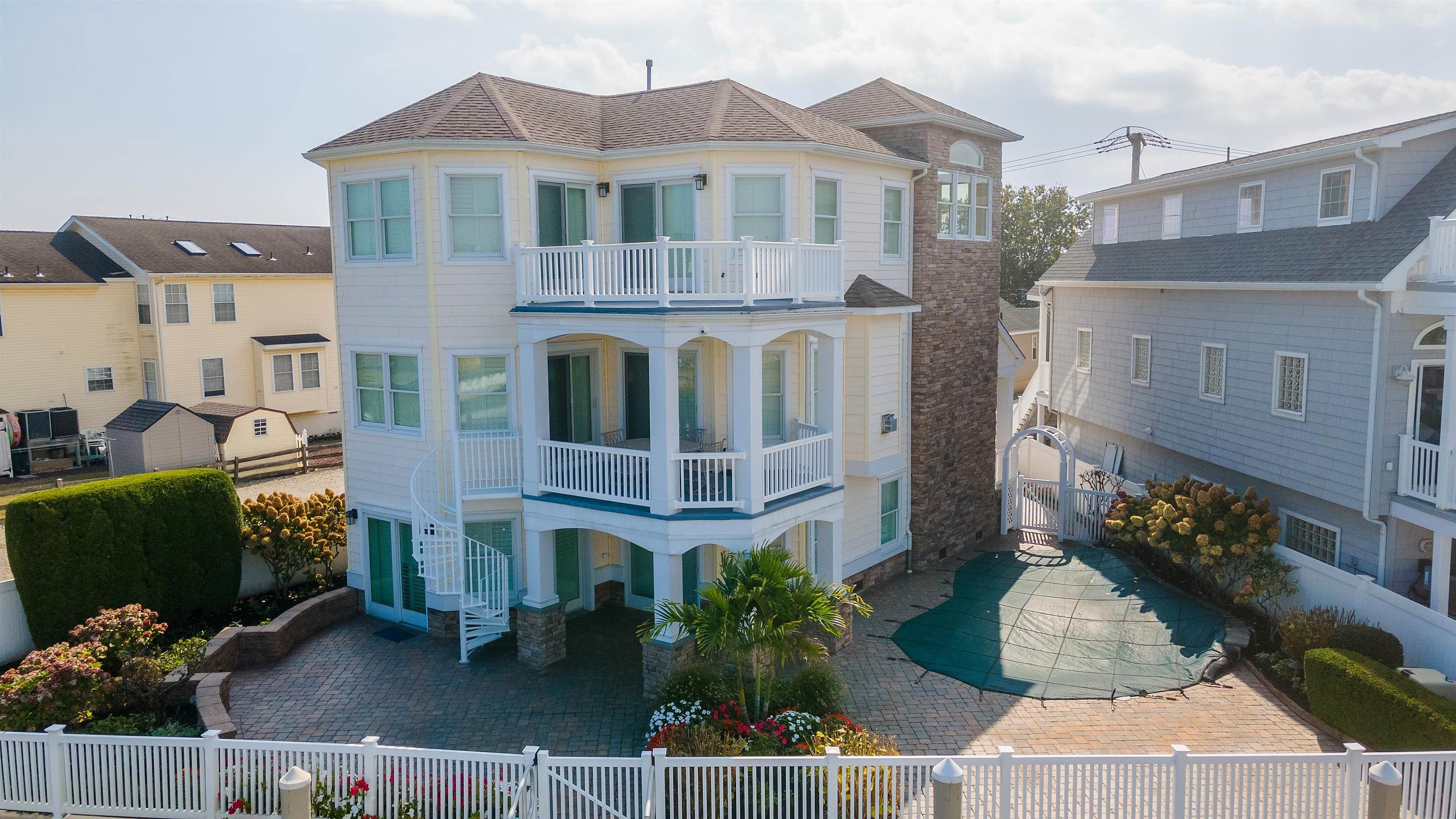 Welcome to your dream waterfront home! This stunning property at 445 W Pine offers unparalleled bay-front living with 4 private boat slips and mesmerizing views. Step outside to a beautifully landscaped patio, perfect for entertaining or relaxing by the in-ground heated pool. The private dock is ideal for boating enthusiasts. Inside, the first floor features an inviting living area with plantation shutters and a cozy bar, perfect for gatherings. This charming space with a full bar setup is sure to impress your guests. The adjacent bathroom adds convenience for guests. The large garage offers ample storage for your car, bikes, and boating equipment, making it perfect for an active life! On the second floor, enjoy an open concept living area featuring a gourmet custom kitchen with oversized cabinets and Subzero appliances, along with a pantry room, large island, and stunning bay views. The spacious bedroom features a full ensuite bathroom for added privacy, while an additional half bath on this level offers extra convenience. The second-floor balcony provides an ideal spot to enjoy the water views, and the laundry room is also conveniently located on this floor. The third floor boasts three bedrooms, two of which have ensuite bathrooms for a private, luxurious experience. A balcony on this level offers panoramic bay views, making it the perfect retreat. Schedule your private tour today and discover why this bay front gem is the ideal retreat!"